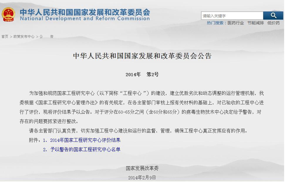 2011-2012年度國(guó)家工程研究中心評(píng)價(jià)工作,從2013年3月展開(kāi),經(jīng)過(guò)專家組近一年的綜合評(píng)審工作,于2014年2月由國(guó)家發(fā)改委2號(hào)公告(見(jiàn)圖2)宣布評(píng)價(jià)結(jié)果,哈爾濱焊接研究所高效焊接新技術(shù)國(guó)家工程研究中心,由上屆86個(gè)國(guó)家級(jí)中心參評(píng)排名63,到本屆90個(gè)國(guó)家級(jí)中心參評(píng)排名27,獲得有史以來(lái)排名最前的佳績(jī),取得80.3分,爭(zhēng)得申報(bào)國(guó)家重大項(xiàng)目的優(yōu)先權(quán)。此次成績(jī)的獲得是國(guó)家投資給我們搭建了展示的平臺(tái),與中心創(chuàng)新能力建設(shè)項(xiàng)目息息相關(guān)。
