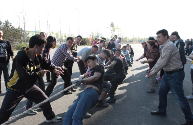 此次活動(dòng)報(bào)名參賽人員踴躍,四項(xiàng)活動(dòng)有近690人次參加比賽。活動(dòng)項(xiàng)目有跳繩比賽、運(yùn)球比賽、袋鼠賽跑比賽和拔河比賽。隨著檢錄哨音的落下比賽正式開(kāi)始,首先開(kāi)始的是跳繩比賽,跳繩比賽為8人一組,其中2人搖繩,6人跳繩,這個(gè)項(xiàng)目需要配合默契,雖然初次組合,大家都很認(rèn)真,憋足了勁在不斷的跳躍,有的隊(duì)員已累的精疲力盡,但為了集體的榮譽(yù),為了不影響到大家的總成績(jī)咬著牙一直堅(jiān)持著,充分體現(xiàn)出了集體的精神和力量。運(yùn)球比賽今年是創(chuàng)新項(xiàng)目,為了使這項(xiàng)活動(dòng)產(chǎn)生好的氣氛和效果,我們?cè)诘谰叩念伾虾痛笮∩媳M可能的進(jìn)行了夸張,達(dá)到了預(yù)期的效果。運(yùn)球比賽算是一項(xiàng)接力項(xiàng)目,需要四人的密切配合,才能加快運(yùn)球速度。雖然是新項(xiàng)目,但大家傳起球來(lái)你來(lái)我往,配合有度,熱鬧好看。袋鼠賽跑是一項(xiàng)個(gè)人項(xiàng)目,人站在袋子里向前跳躍,大家都很勇敢,有的摔倒仍立刻爬起來(lái)繼續(xù)往前跳,從這項(xiàng)活動(dòng)中充分體現(xiàn)出我所職工的拼搏精神。最后一項(xiàng)比賽是我所的傳統(tǒng)項(xiàng)目拔河比賽,雖然是老項(xiàng)目,但每次的參賽人員都賦予了這個(gè)項(xiàng)目極高的熱情,從中能看出集體的智慧和力量。場(chǎng)內(nèi)隊(duì)員個(gè)個(gè)都拼盡全身力氣,都不肯松開(kāi)手,一再堅(jiān)持,場(chǎng)面很讓人感動(dòng)。場(chǎng)外觀(guān)眾更是熱情高漲,自然形成了強(qiáng)大的拉拉隊(duì)伍,令人震撼。